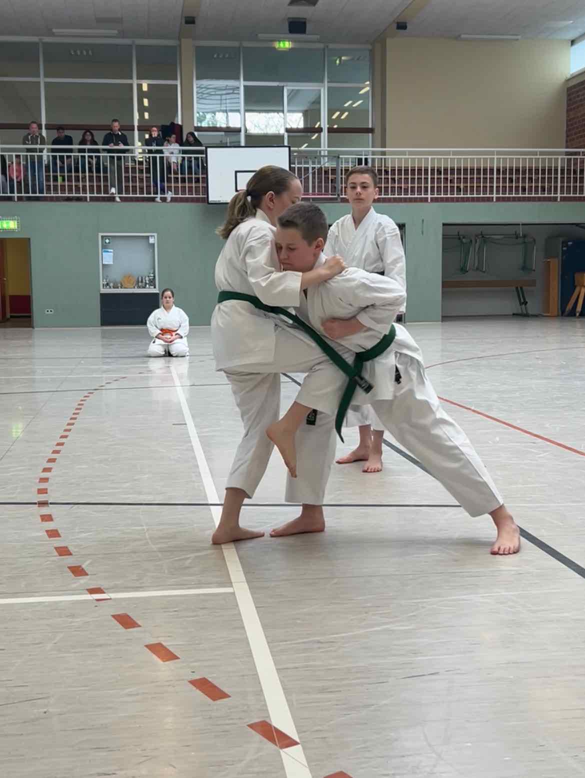 Abteilungsleiter und Trainer Danjel Hirsch war mit der Leistung seiner Schützlinge zufrieden. „Wir haben uns von der Pandemie erholt und haben jetzt fast 80 aktive Karateteilnehmer in den unterschiedlichsten Altersgruppen, die regelmäßig am Training teilnehmen. Leider hat es für die Prüfung nicht bei jedem gereicht, um sich der Prüfung zu stellen. Eine weitere Prüfung soll noch vor den Sommerferien stattfinden“. Für die nötige Atmosphäre sorgten die zahlreich erschienen Eltern, Freunde und Bekannte, die sich in der 3-fach Sporthalle der KGS Turnhalle in Wittmund eingefunden haben und die Prüfungen verfolgten. Erst über Ostern war ein Teil der 75 köpfigen Karategruppe auf einem Karatelehrgang in Hamburg, wo ebenfalls die Möglichkeit bestand, sich auf die Prüfung vorzubereiten.