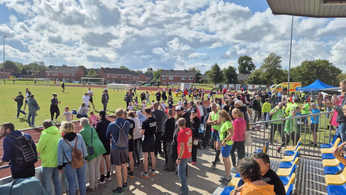 Bei Sonnenschein begann die Veranstaltung mit den Kinder-und Jugendläufen über 400 und 1200 m im Stadion. Zahlreiche Eltern und Großeltern säumten die Laufbahn, die Tribünen im Stadion waren voll besetzt. Bürgermeister Rolf Claussen hob Engagement der Organisatoren hervor und war sich sicher, dass nach dem Erfolg des ersten Laufes auch in den kommenden Jahren Bürgerläufe stattfinden.