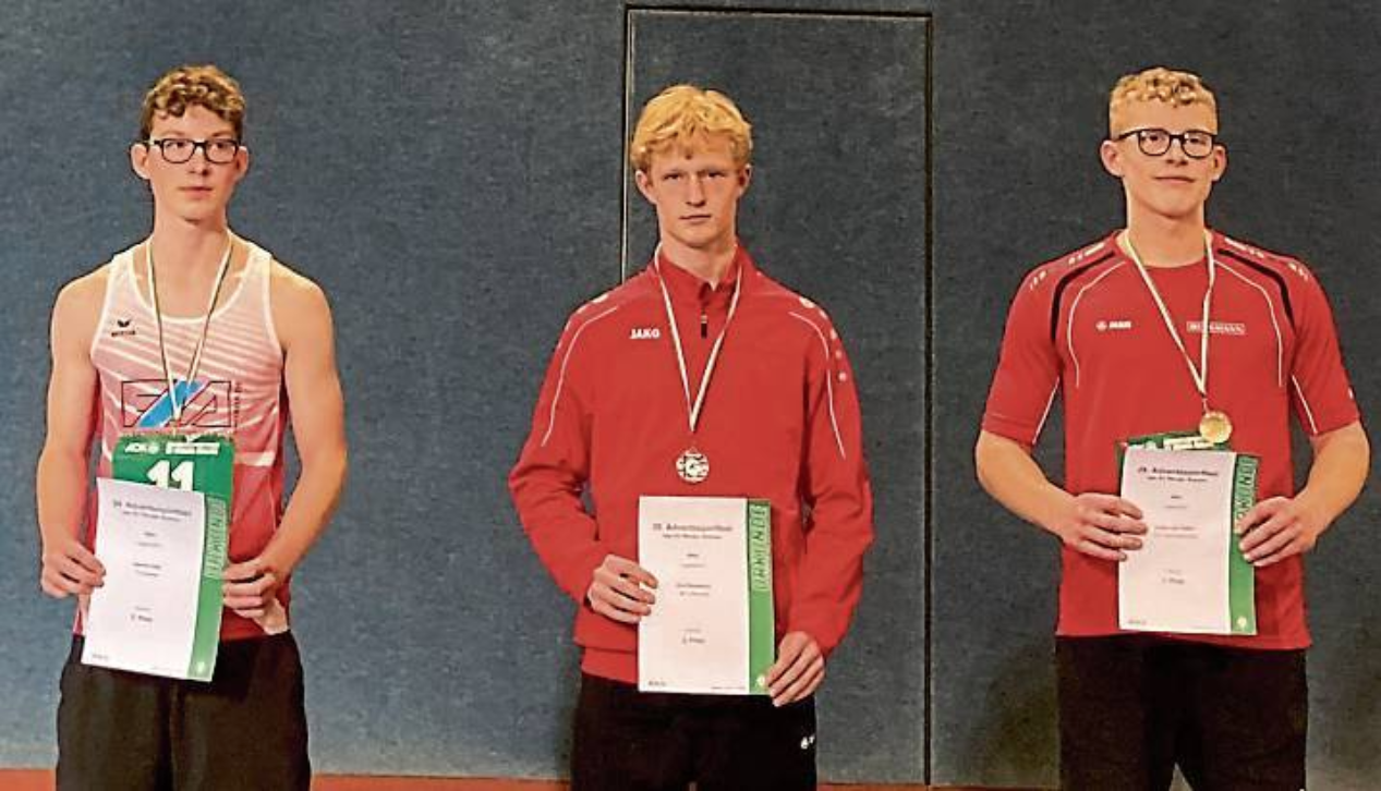 Eric Siepmann (Mitte) holte bei seiner Wettkampfpremiere Gold im Hochsprung. BILD: MTV Wittmund