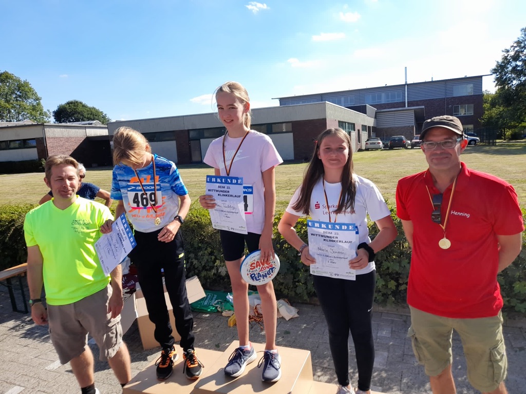 7. September 2022Das Orga-Team des Klinkerlaufes bedanktsich bei den zahlreichen ehrenamtlichen Helferinnen und Helfern für die tatkräftige Unterstützung. Besonders zu erwähnen sind hierbei die Johanniter, die Feuerwehren Eggelingen und Ardorfund die Polizei für die Absicherung der Strecken. Das Klinkerlaufkaffee wurde wieder sehr erfolgreich dank der vielen Kuchenspenden durchgeführt. Besonders erfreulich war die große Teilnehmerzahl bei den Kindern und Jugendlichen. Ein Vater unterstrich, wie großartig er es fand, dass Kinder so an Sport herangeführt werden. Besonders hervorzuheben ist das Engagement des Teams des Kindergartens Goethestraße, das mit vielen Kindern in bedruckten Trikots antrat.