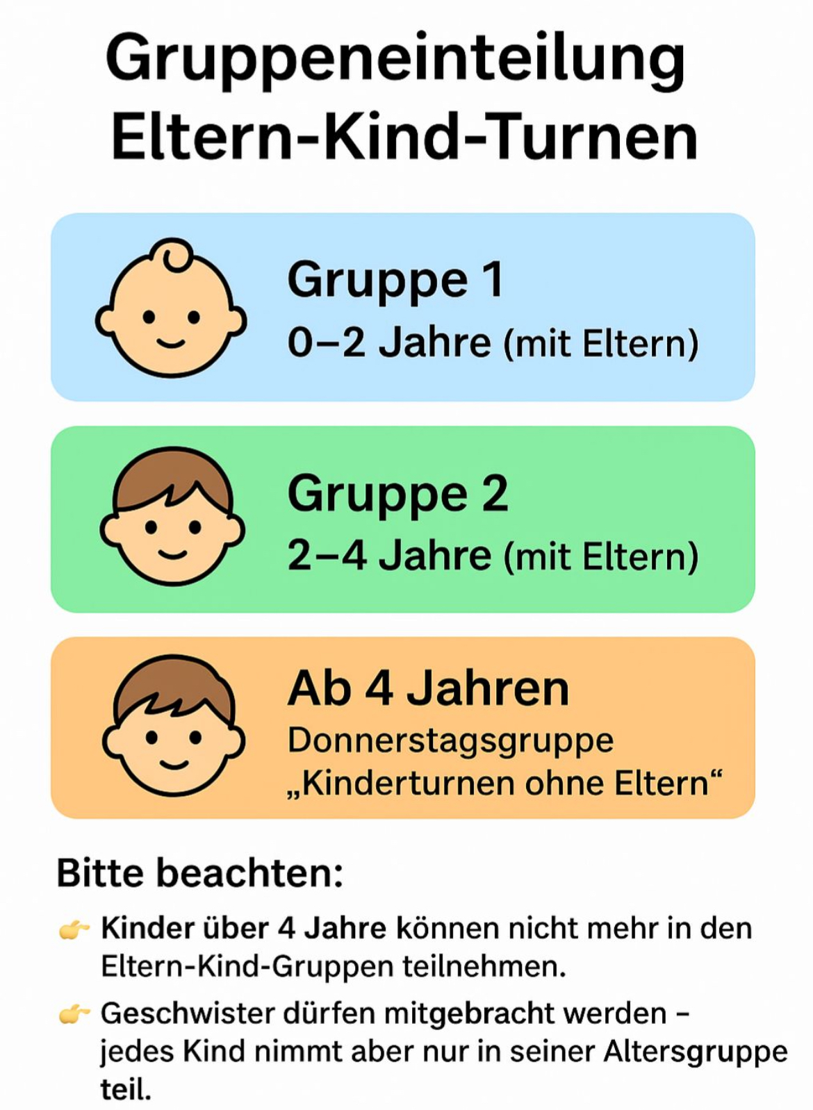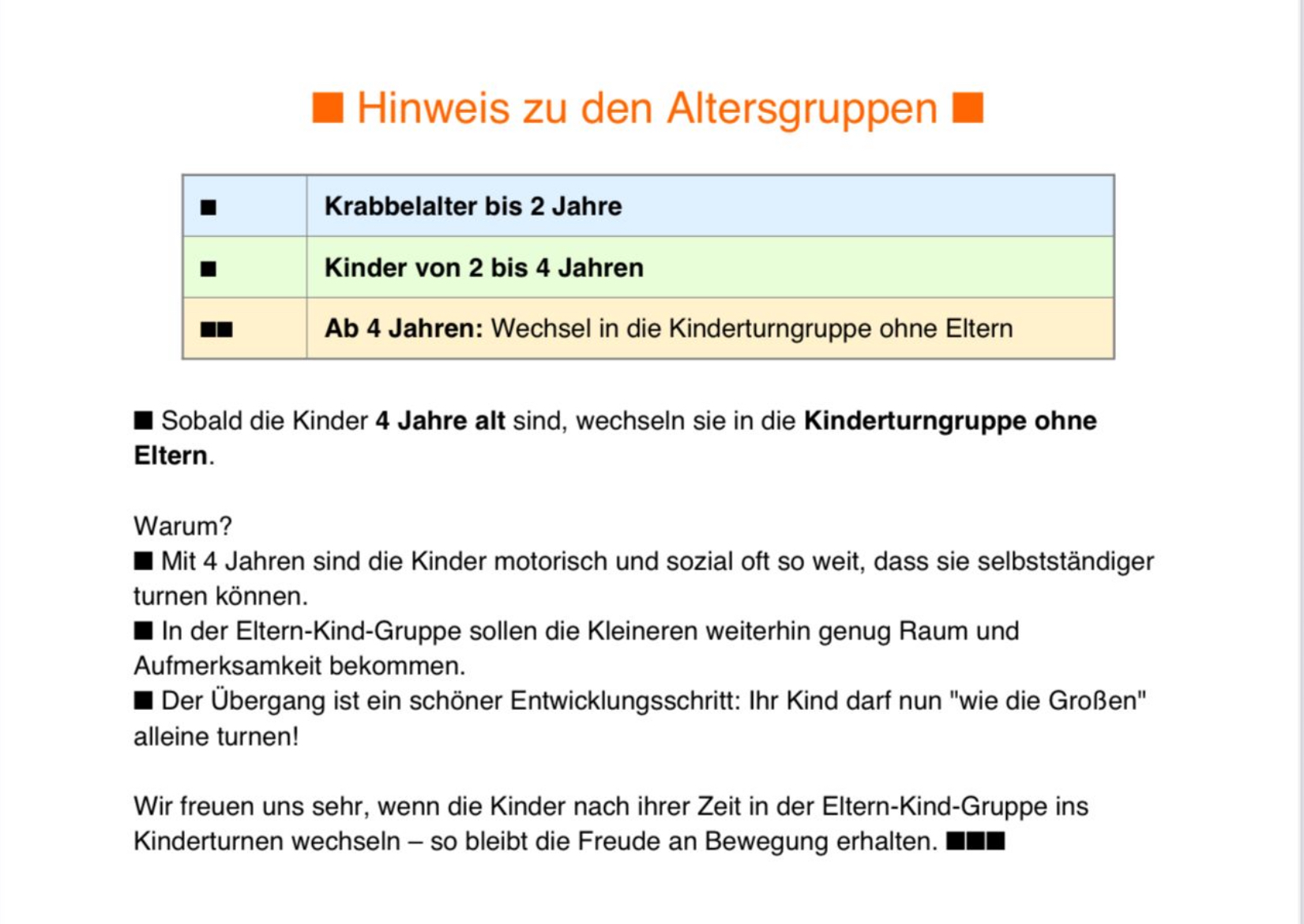 WICHTIGER HINWEIS ZUM KINDERTURNEN